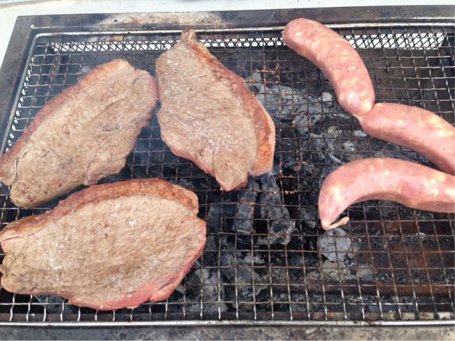 坂戸、若葉駅前の「ブラジルストア」でお肉を買ってBBQ すっかり春になりました! 春恒例のブラジルバーバキューをやろう!ということで いつものお店でお肉を買ってきました。 上の写真のビル3Fです。 http://www.brasilstore.jp/ 東武東上線若葉駅南口のレストランもやっている「ブラジルストア」です。 店内にはお肉屋さんが入っていて安くて美味しい肉をその場でカットしてくれます。 我が家の定番は 「ピッカーニャ」という牛ランプ肉のステーキです。 通信販売でも買えるようです。 表面に岩塩を着けて、炭火で油を落としながら焼きます。 「炭で焼く」これだけでこんなにも美味しくなるんですね! 1cmくらいの厚さに切ったピッカーニャをミディアムで焼けたら、 トマトとピーマン、玉ねぎを細かくカットし、 ビネガーとオリーブオイルを加えた特製ソースを載せて頂きます! 手前味噌ですが、このバーバキューは最高に美味しいです!!!! 同僚のブラジル人から教えてもらって、ここ数年やってます。 肉も厚くて、多いきいので、 焼き焼き当番の私も、ゆっくりと食べられるのもよいです。 そしてもう一つの主役が、生ソーセージの「リンギッサ」です。 豪快に焼いて、先ほどのソースをかけていただきます。 このソーセージは子供たちも大好きですが、 大人はビールが進みます。 今年も何度となく、このお店にお世話になる予定です。 お店の奥のレストラン「カッピンドウラード」ではシュハスコが頂けます。 こちらも大好きなので、詳しくはまた記事にさせて頂きます。 http://timico.syoyu.net/%E5%9D%82%E6%88%B8/%E5%9D%82%E6%88%B8%E3%80%81%E8%8B%A5%E8%91%89%E9%A7%85%E5%89%8D%E3%81%AE%E3%80%8C%E3%83%96%E3%83%A9%E3%82%B8%E3%83%AB%E3%82%B9%E3%83%88%E3%82%A2%E3%80%8D%E3%81%A7%E3%81%8A%E8%82%89%E3%82%92%E8%B2%B7%E3%81%A3%E3%81%A6bbq坂戸、若葉駅前の「ブラジルストア」でお肉を買ってBBQ