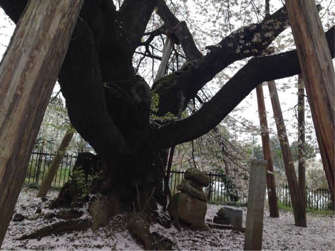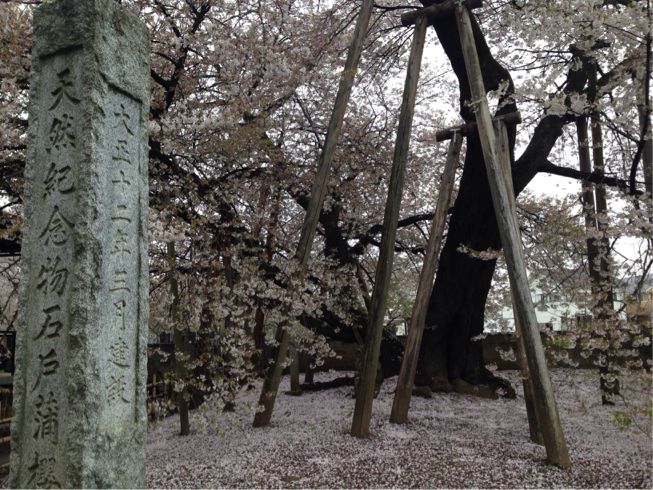 日本五大桜 北本市 石戸 蒲ザクラを見に行って来ました。 週末、北本市の蒲(かば)ザクラを見に行ってきました。 今年は、一気に咲いてしまい、今週末は曇り、雨模様でお花見出来るか心配でしたが、 雨の合間を縫って見に行くことができました。 桜も散り始め、葉桜がちらほらありましたが、その迫力は充分味わうことができました。 日本5大桜のひとつがこんなに近くにあったのですね。 樹齢なんと800年! 1922年(大正11年)に国の天然記念物に指定されてから大事にされてきたそうです。 この日はお祭りで、蒲ザクラ太鼓の演奏も聞くことができ、 子供たちが頑張っていて迫力の演奏を聞かせてくれました。 大正の頃は、4本の幹からなる、それは大きなものだったそうです。 そのうちの1本が今も残っている訳ですが、 とても大きな幹が、桜の花びら絨毯の上に伸びる姿は凛々しいく感じました。 場所は圏央道北本インターからほど近いところです。 石戸蒲ザクラ 埼玉県北本市石戸宿3丁目119 東光寺境内 了 http://timico.syoyu.net/%E5%8C%97%E6%9C%AC%E3%83%BB%E9%B4%BB%E5%B7%A3%E3%83%BB%E5%8A%A0%E9%A0%88/%E6%97%A5%E6%9C%AC%E4%BA%94%E5%A4%A7%E6%A1%9C%20%20%E5%8C%97%E6%9C%AC%E5%B8%82%E7%9F%B3%E6%88%B8%20%E8%92%B2%E3%82%B6%E3%82%AF%E3%83%A9%E3%82%92%E8%A6%8B%E3%81%AB%E8%A1%8C%E3%81%A3%E3%81%A6%E6%9D%A5%E3%81%BE%E3%81%97%E3%81%9F%E3%80%82日本五大桜 北本市 石戸 蒲ザクラを見に行って来ました。