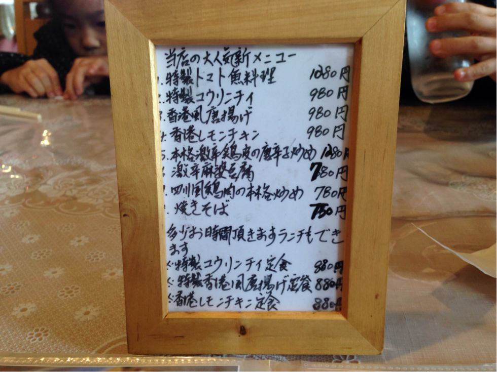 鶴ケ島市中華料理「御園(みその)」でユウリンチイ。 以前から、幾つかのブログで紹介されており、 気になっていたお店に行ってきました。 鶴ヶ島市の「御園」(みその)です。 中国本国で、数々の経験をつんで来られたご主人のいる中華料理屋さんです。 場所は少し駅から離れたところにあります。 しかし店の近くに駐車場がしっかりと完備されておりますので、 車でのアクセスは問題ありません。 ▼沢山のメニューがありますが、「当店の大人気メニュー」の写真を撮ってきました。 お得な日替わり定食も良いですが、夜皆でワイワイ集まって 色々な料理を他のオーダーして、お酒とともに味わってみたいです! 店の前に、お得なランチ定食の情報などが書いてありましたが、 本日は大人気メニューの中から「ユウリンチイ定食」を頂きました。 スープと、ザーサイ、デザートがついております。 ライスはお代わり1杯無料です。 油淋鶏(ゆうりんちい)って今までそんなに食べたことはありませんでしたが 写真を見ていかにも美味しそうな姿に思わず注文です。 カリッカリにあげられた大きな鶏ももに、生姜とネギが効いた ソースがジュワーっとかかかっております。 これはご飯が進んでしまいますね。 美味しかったです、揚がり具合が絶品でした! これは他のメニューも是非食べてみたくなりました。 お店の雰囲気も、とてもやさしいお母様と息子さんといった感じで非常に良かったです。 店内も良い意味で、異国情緒が漂っていて。いい感じです。 子供たちが喜んでいたカニラーメン。 卵と、蛯、カニが入って、きゅうりが多めにトッピングされています。 日本人向けにアレンジされた中華料理はとても好きですが、 御園の味は本場の美味しい味で、中華が異国の料理であることを思い出させてくれるような ワクワクするような味わいです。 また行ってきたいと思います。 今度は「香港レモンチキン」辺りを注文してみたいと思います。 御園 埼玉県鶴ヶ島市鶴ヶ丘 62−22 049-270-2787 PR http://timico.syoyu.net/%E9%B6%B4%E3%83%B6%E5%B3%B6/%E9%B6%B4%E3%82%B1%E5%B3%B6%E5%B8%82%E4%B8%AD%E8%8F%AF%E6%96%99%E7%90%86%E3%80%8C%E5%BE%A1%E5%9C%92%EF%BC%88%E3%81%BF%E3%81%9D%E3%81%AE%EF%BC%89%E3%80%8D%E3%81%A7%E6%9C%AC%E6%A0%BC%E3%83%A6%E3%82%A6%E3%83%AA%E3%83%B3%E3%83%81%E3%82%A4%E3%80%82鶴ケ島市中華料理「御園(みその)」でユウリンチイ。