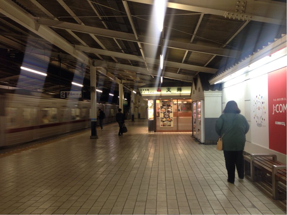 上りホームには、「吉野家」が入ったり、「はなまるうどん」になったりと、